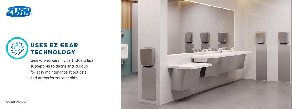 Create a more hygienic, sustainable and reliable restroom experience. This sensor faucet has a gear-driven ceramic cartridge with no solenoids to replace. The high-efficiency, low-flow rate and 30-second timeout help save water to meet sustainability goals. Hydro•X Power® technology option offers renewable hydropower. Bluetooth app standard for point-of-use wireless programmable metering, on-demand or automatic line flushing, timeout and sensor sensitivity settings. Upgrade to the plumbSMART™ connected option for remote monitoring that provides real-time usage insights to your connected plumbing ecosystem.